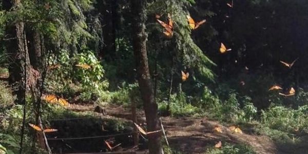Sanctuaire des monarques d'El Rosario, État de Michoacan, Mexique PlanetSOS.org a nettoyé et ramassé les déchets sur les sentiers des monarques. Après notre visite, la forêt a retrouvé son état sauvage. (Printemps 2017)